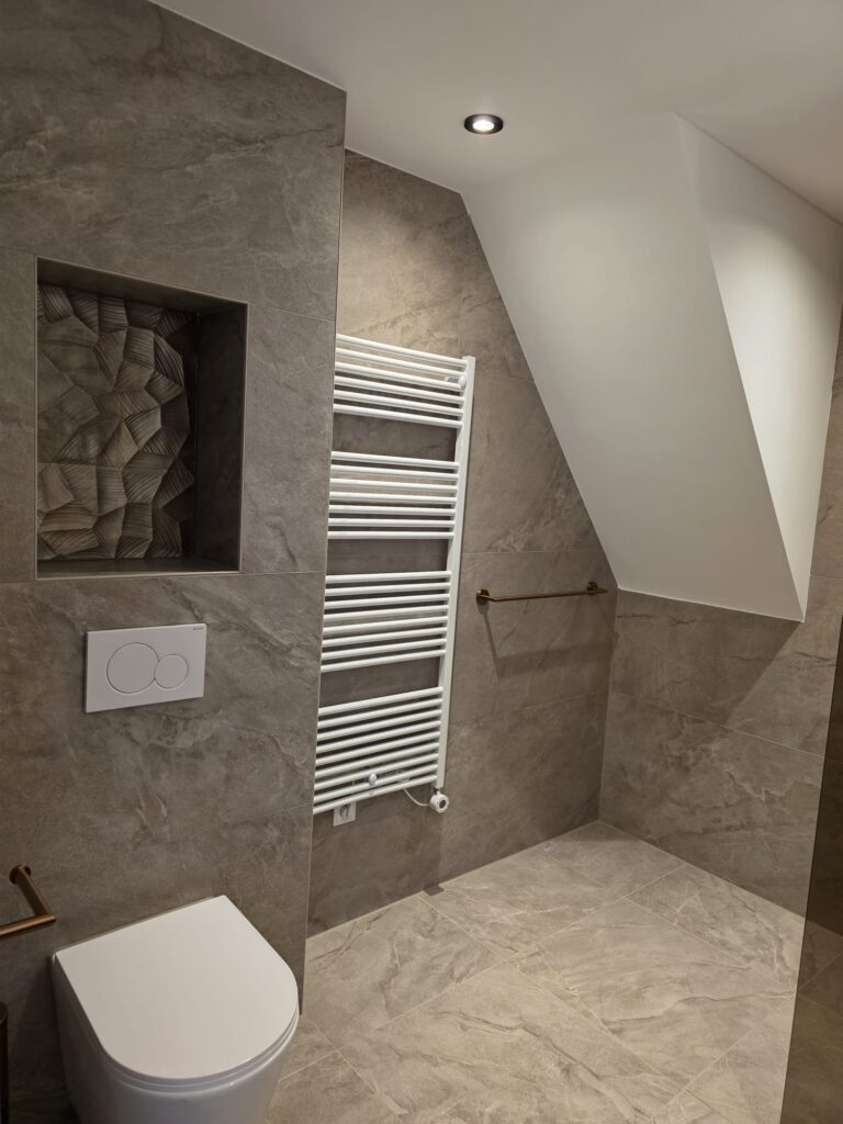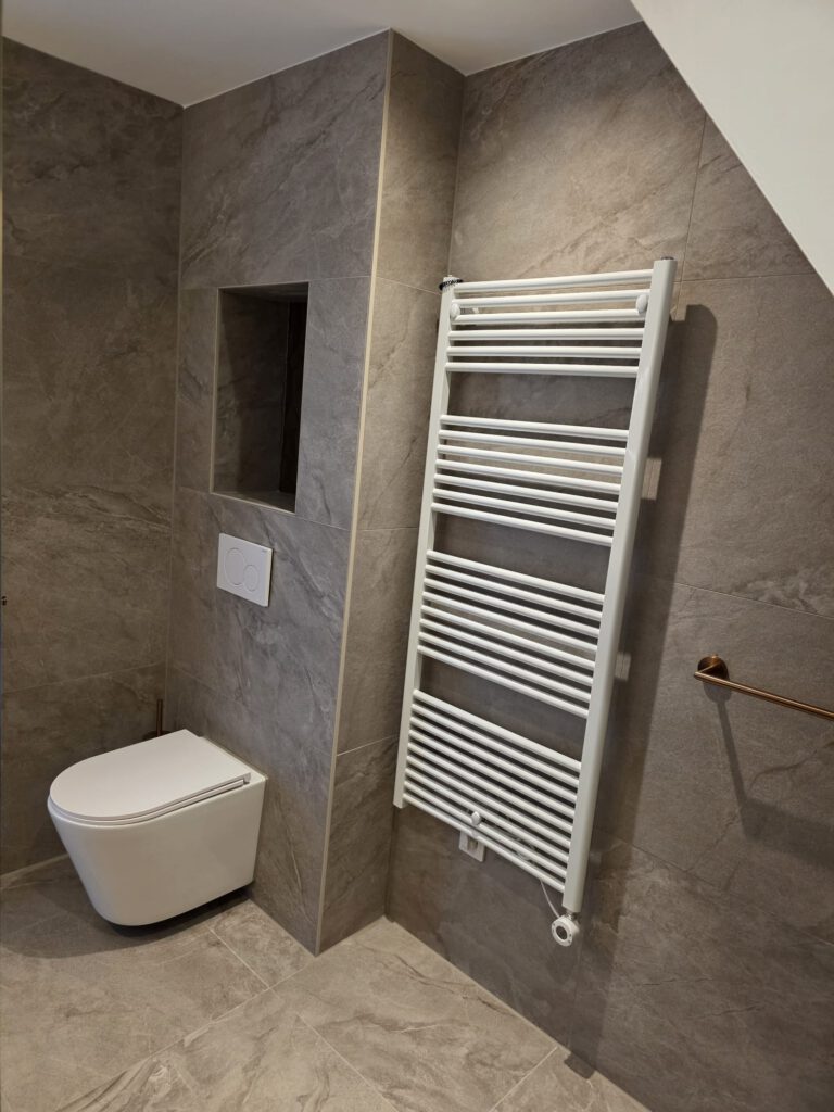 Tijdens het plaatsen van de badkamer en het toilet beneden merkte we meteen dat hij een echte vakman is. Alles is superstrak gelegd, de afwerking is mooi en het eindresultaat overtreft echt onze verwachtingen. Guido is een heel vriendelijke en betrouwbare man die zijn werk met plezier en trots doet, dat straalt er vanaf!