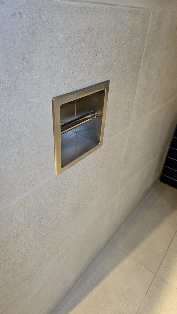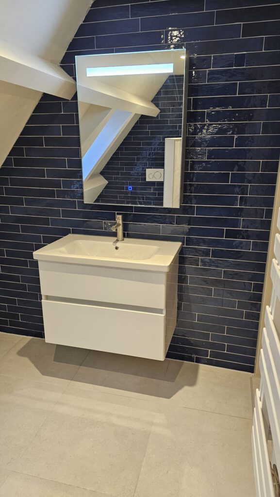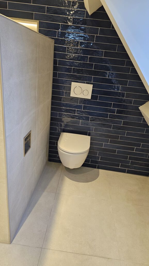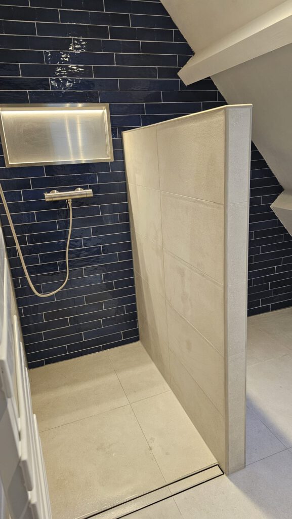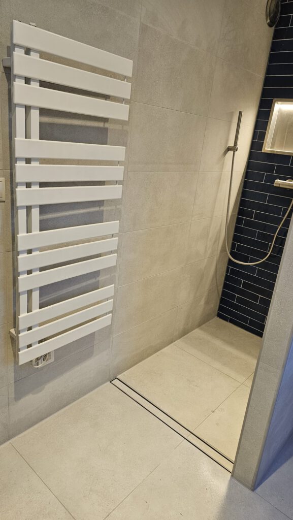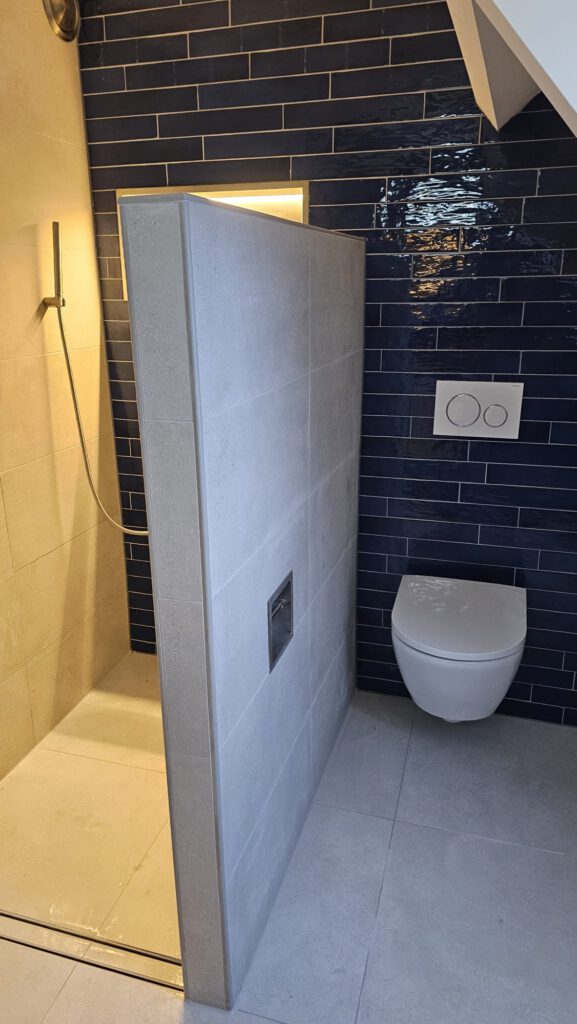 In gezamenlijk overleg heeft Guido een complete badkamer gemaakt. Hij dacht na over de mogelijkheden, heeft alle leidingen (water, afvoer, elektrisch) aangelegd, het complete tegelwerk verricht, en ten slotte alles geïnstalleerd. In één woord: Fantastisch.